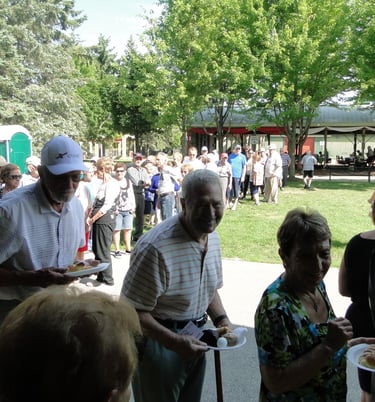 Seniors on a beautiful day out, socializing and having fun.